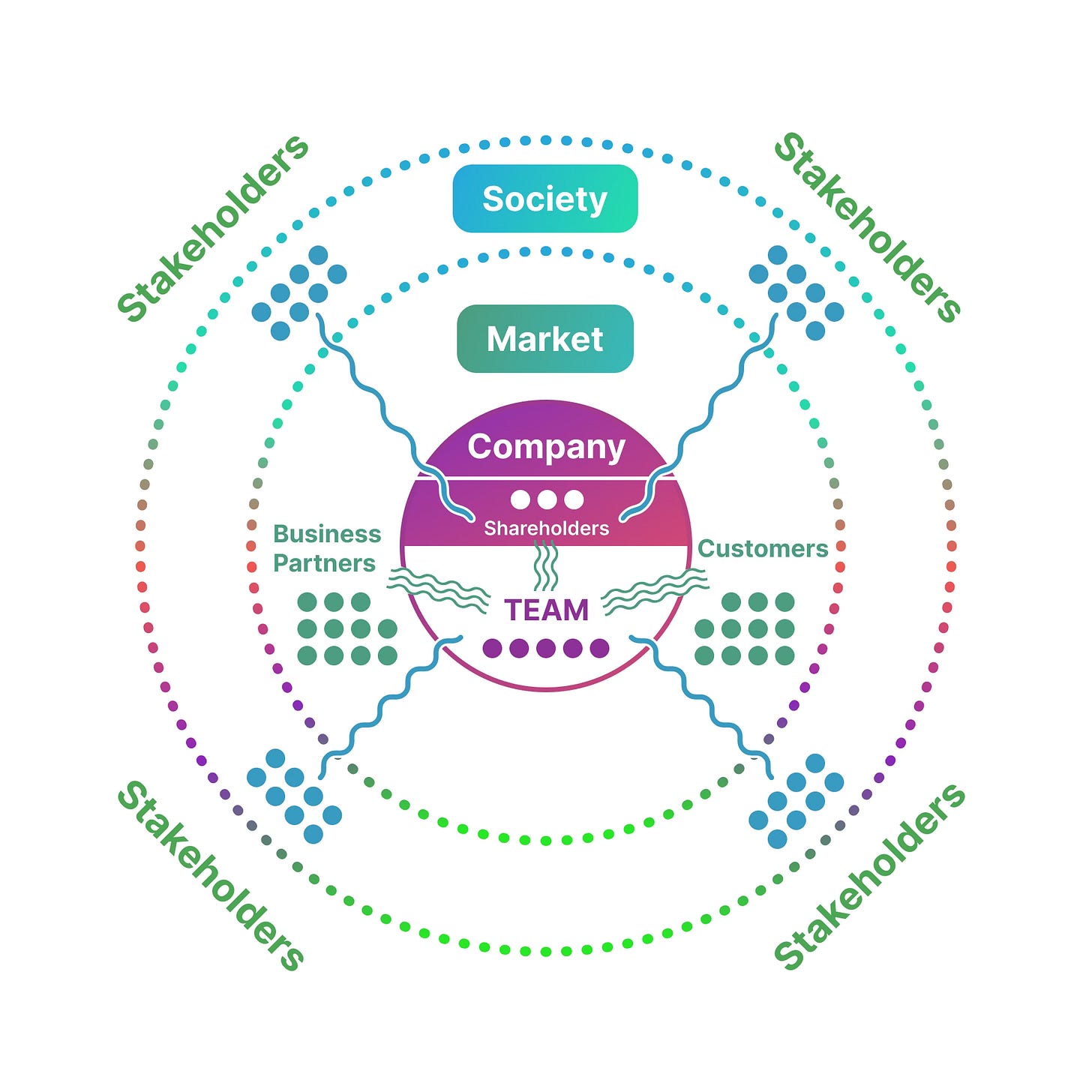 Every business is an ecosystem of relationships based on needs and values. And people within it interact with those outside it in the higher-tier ecosystems.